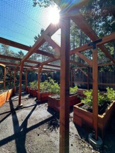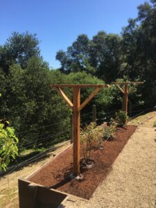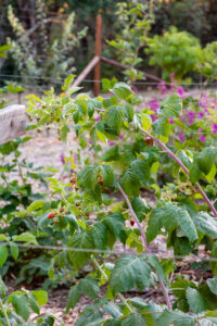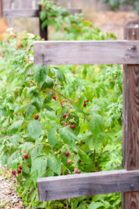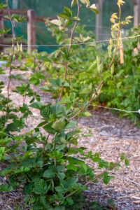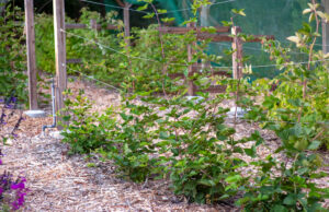 The flavor of a ripe blackberry slightly warmed by the sun, picked, and put directly in your mouth definitely says summer! Blackberries ripen in between blueberries and raspberries. With the installation of a vertical trellis, the vines are trained on the wires to keep them neat and tidy.