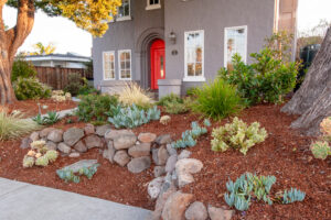 When this couple bought the house in 2017 we helped them create a backyard that better suited them rather than the previous owner… Years later, they decided it was time to enhance the front yard. Before the redesign, the existing plants were an eclectic mix that did not have a theme and the hardscape did not match the house. This new design and installation had the goal to match the hardscape to the house, create a theme in the planting, use more mature planting material, and get rid of some of the rocks that the previous owner loved. This new design and installation was completed in 2022.